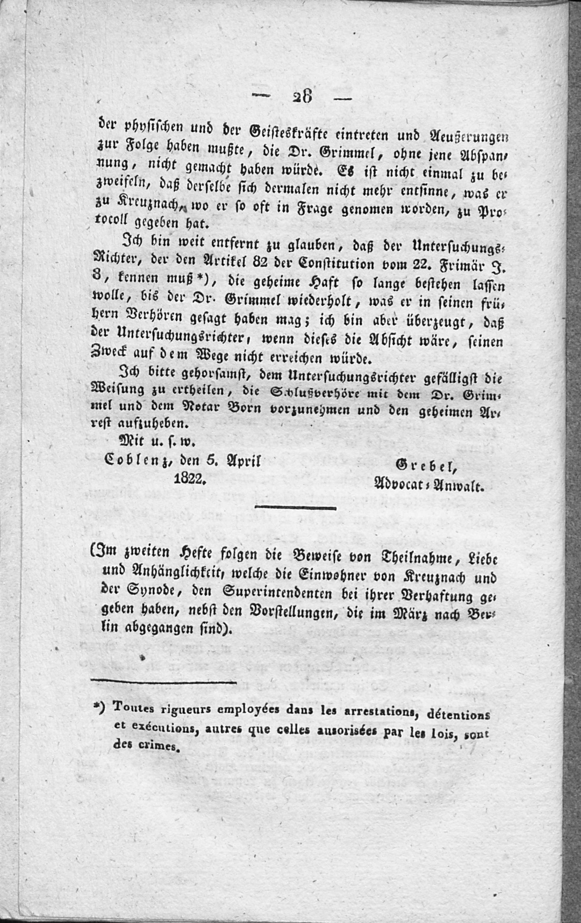 2. Actenstücke, die am 12ten und 20. März 1822 zu Kreuznach stattgehabten Verhaftungen betreffend