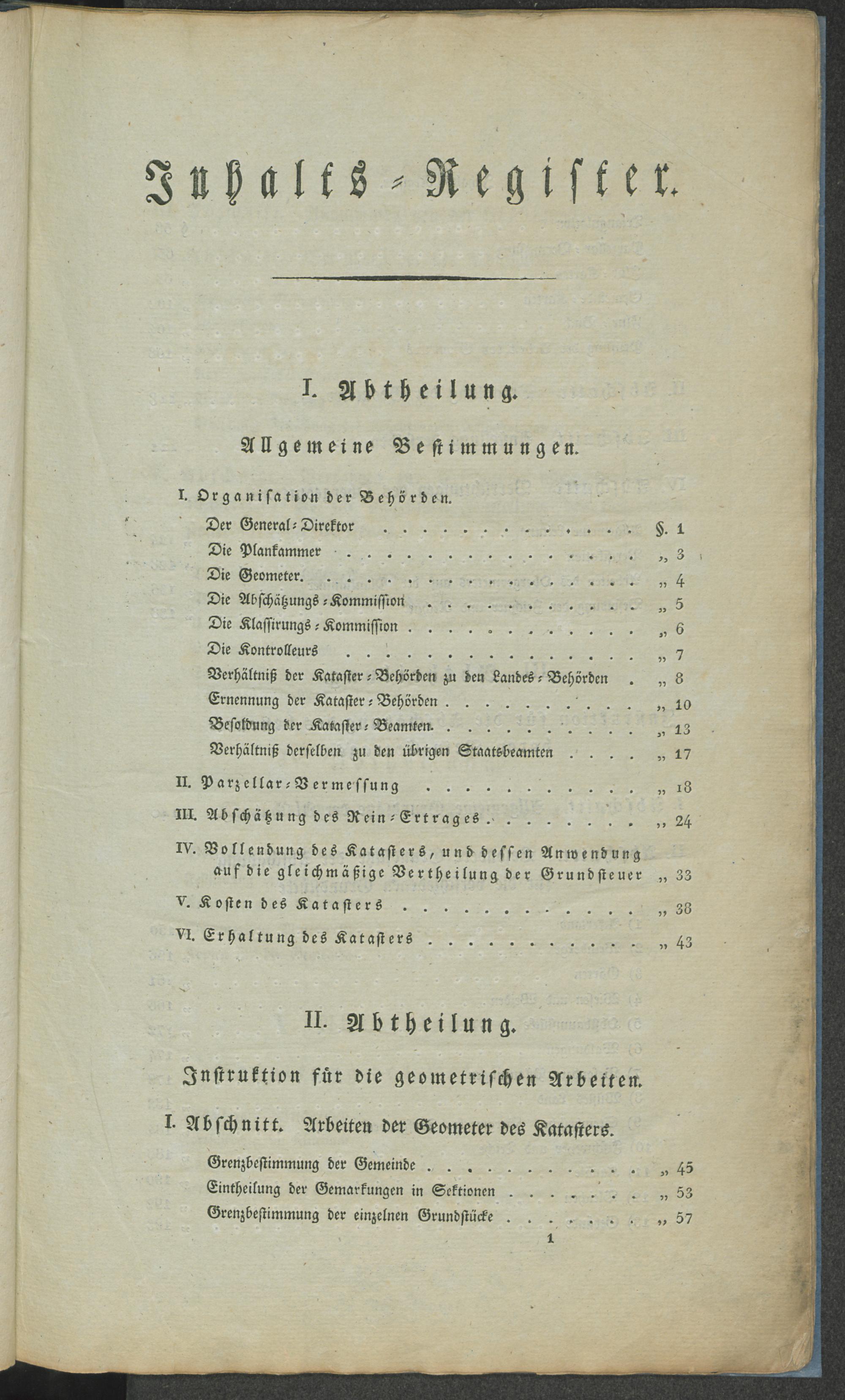 V. Abtheilung. Die Erhaltung des Katasters.
