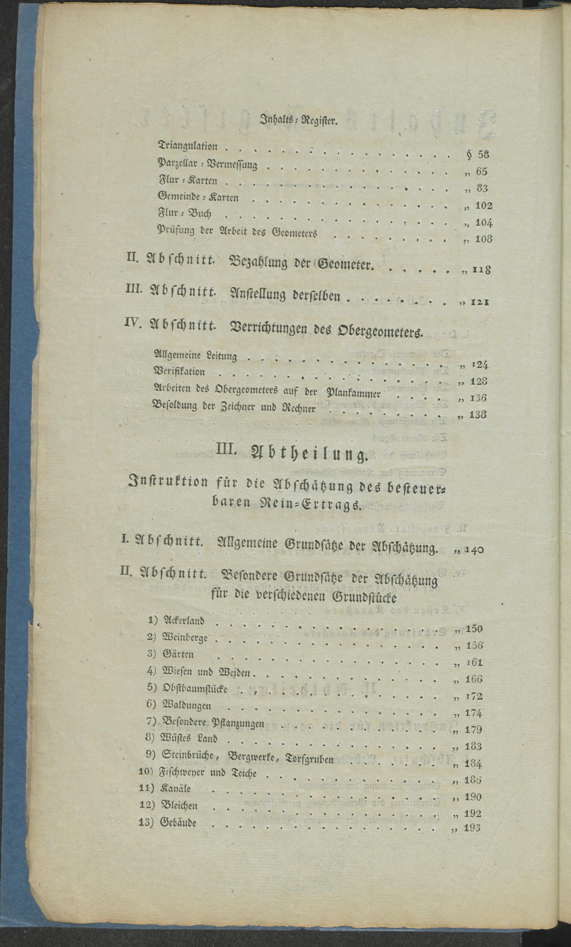 III. Abtheilung. Instruktion für die Abschätzung der Liegenheiten.