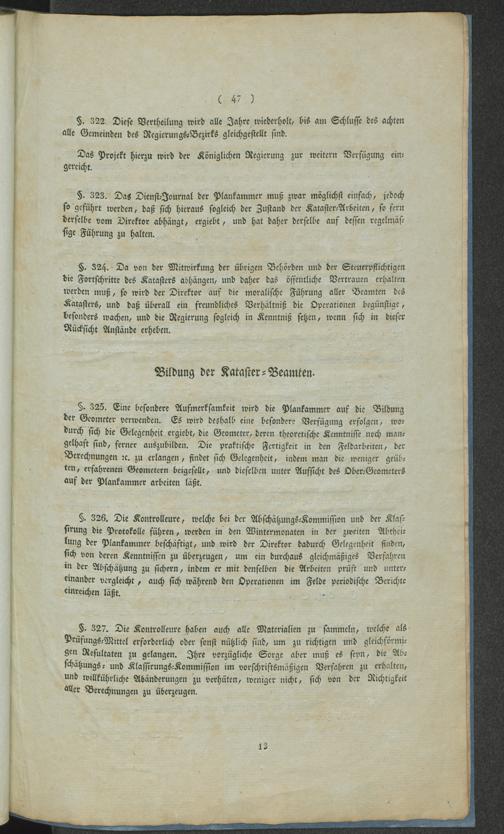 Instruktion für das Kataster der rheinisch-westphälischen Provinzen : entworfen auf den Grund der Verhandlung in Godesberg vom 15ten bis 25ten April 1819