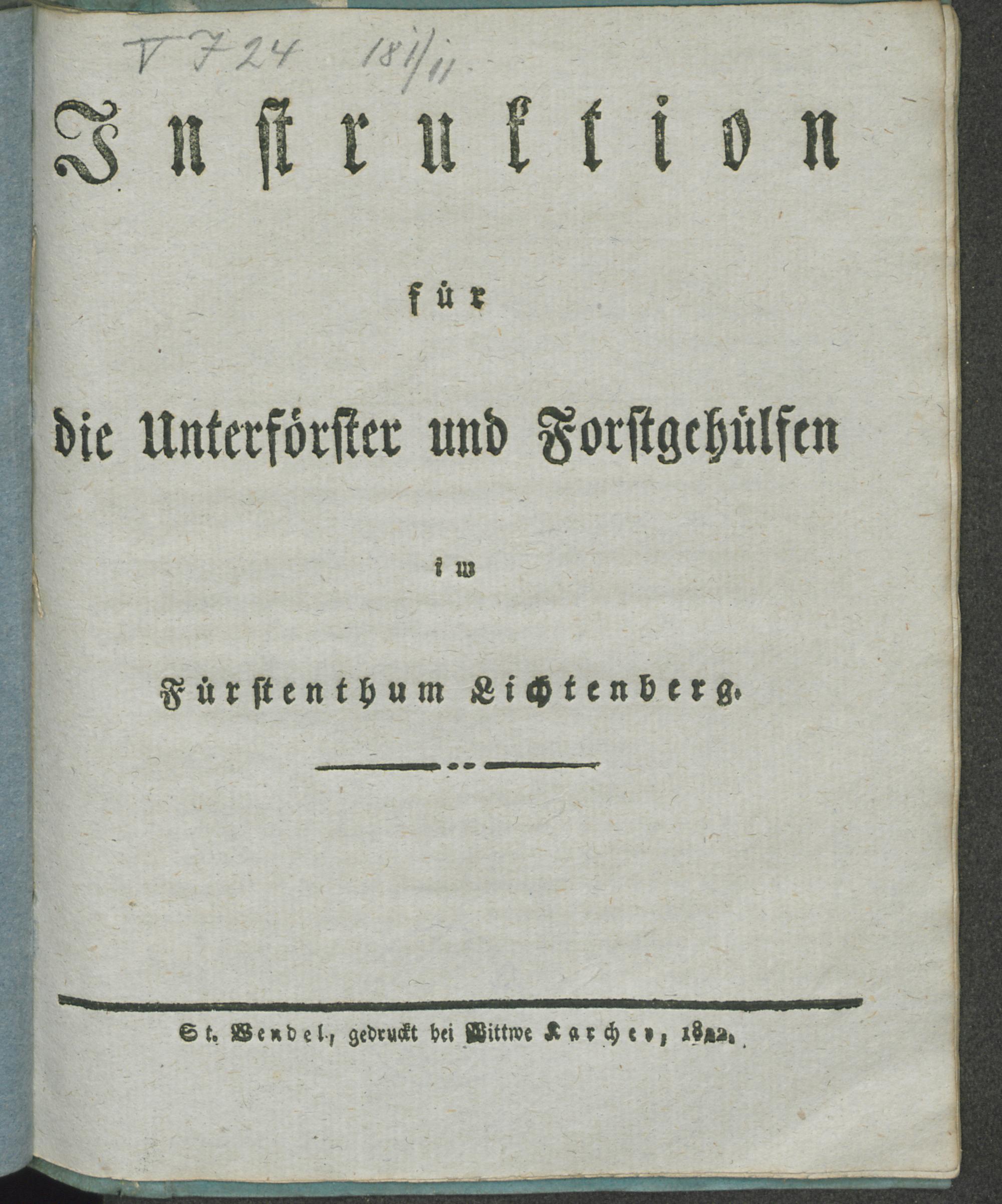 Instruktion für die Unterförster und Forstgehülfen im Fürstenthum Lichtenberg