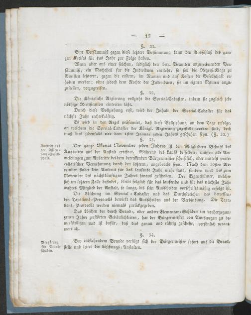 Brand-Assecuranz-Ordnung für die Königl. Preußischen Regierungs-Bezirke von Coblenz und Trier und den Kreis Siegen im Regierungs-Bezirke von Arnsberg : auf den Grund der Verordnungen vom 17ten Januar 1806 und 2ten Junius 1808