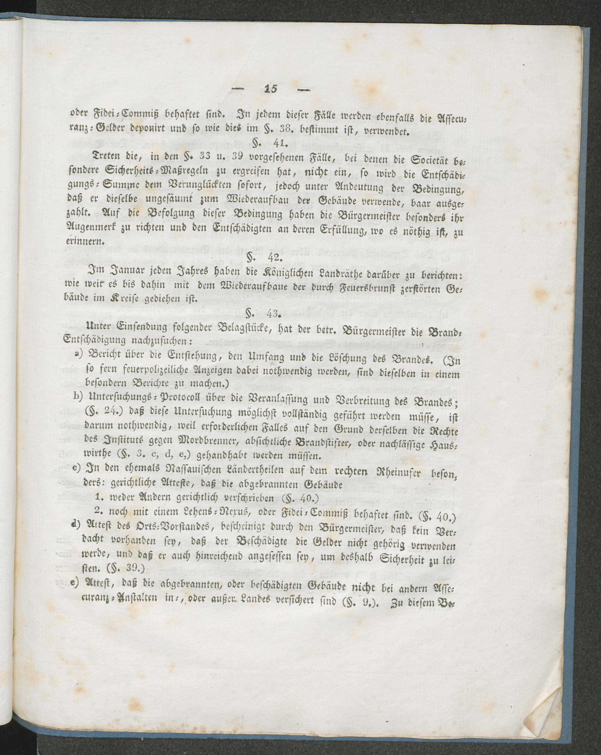 Brand-Assecuranz-Ordnung für die Königl. Preußischen Regierungs-Bezirke von Coblenz und Trier und den Kreis Siegen im Regierungs-Bezirke von Arnsberg : auf den Grund der Verordnungen vom 17ten Januar 1806 und 2ten Junius 1808