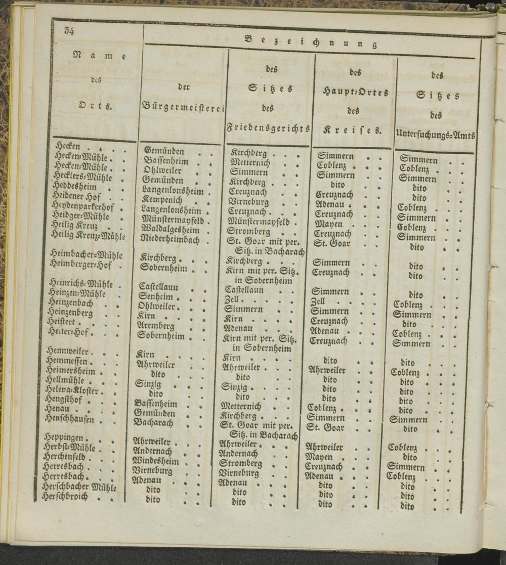 Territorial-Eintheilung der Friedensgerichte im Regierungs-Bezirke Coblenz.