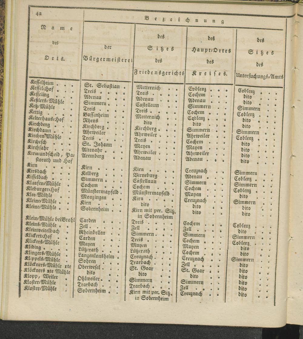 Territorial-Eintheilung der Friedensgerichte im Regierungs-Bezirke Coblenz.
