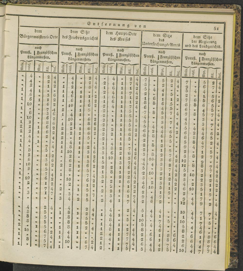 Tabelle der Entfernungen sämmtlicher Ortschaften etc. etc. auf der linken Rheinseite des Regierungs-Bezirks Coblenz