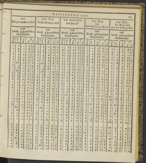 Tabelle der Entfernungen sämmtlicher Ortschaften etc. etc. auf der linken Rheinseite...