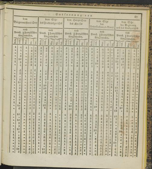 Tabelle der Entfernungen sämmtlicher Ortschaften etc. etc. auf der linken Rheinseite...
