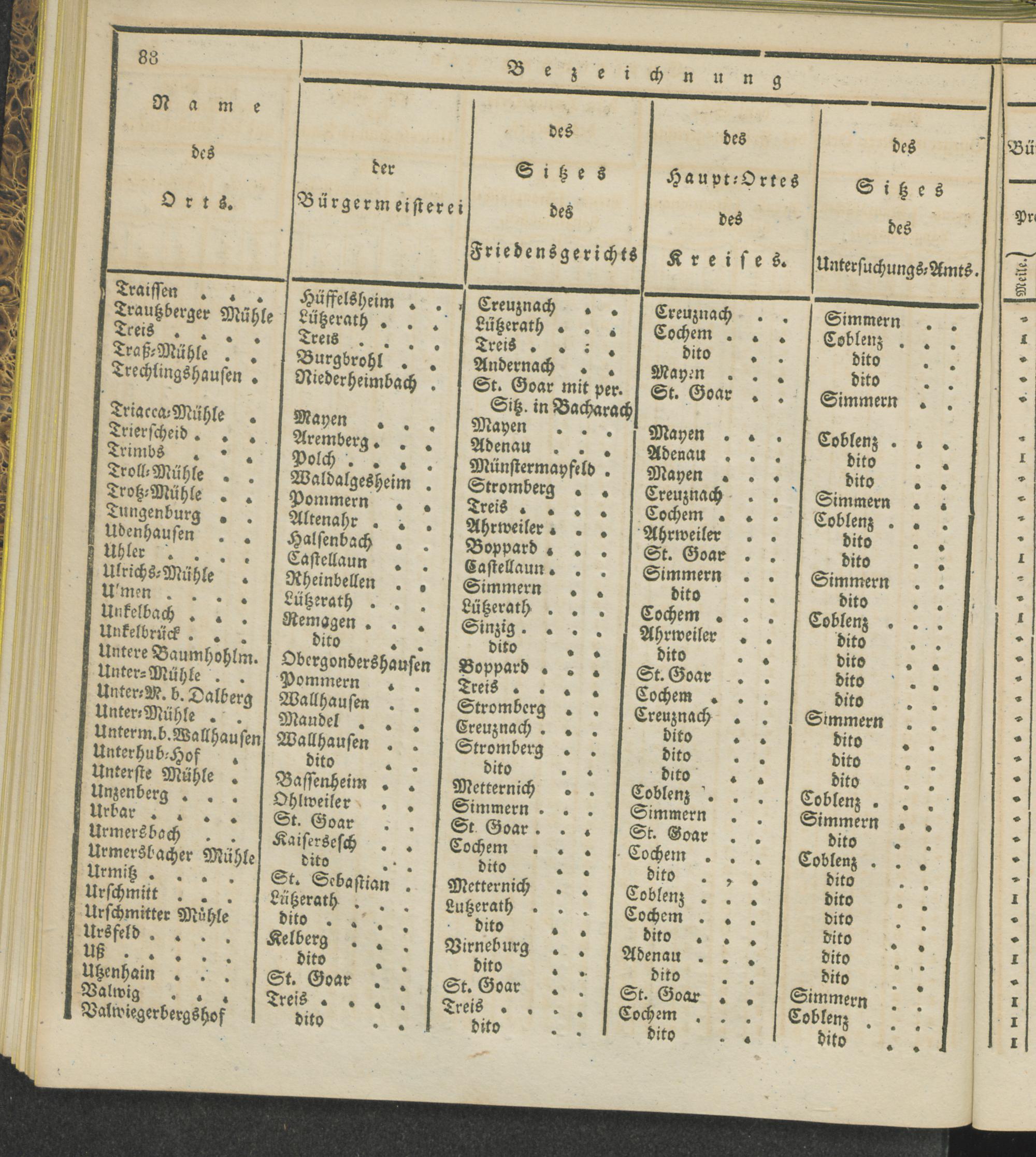Territorial-Eintheilung der Friedensgerichte im Regierungs-Bezirke Coblenz.