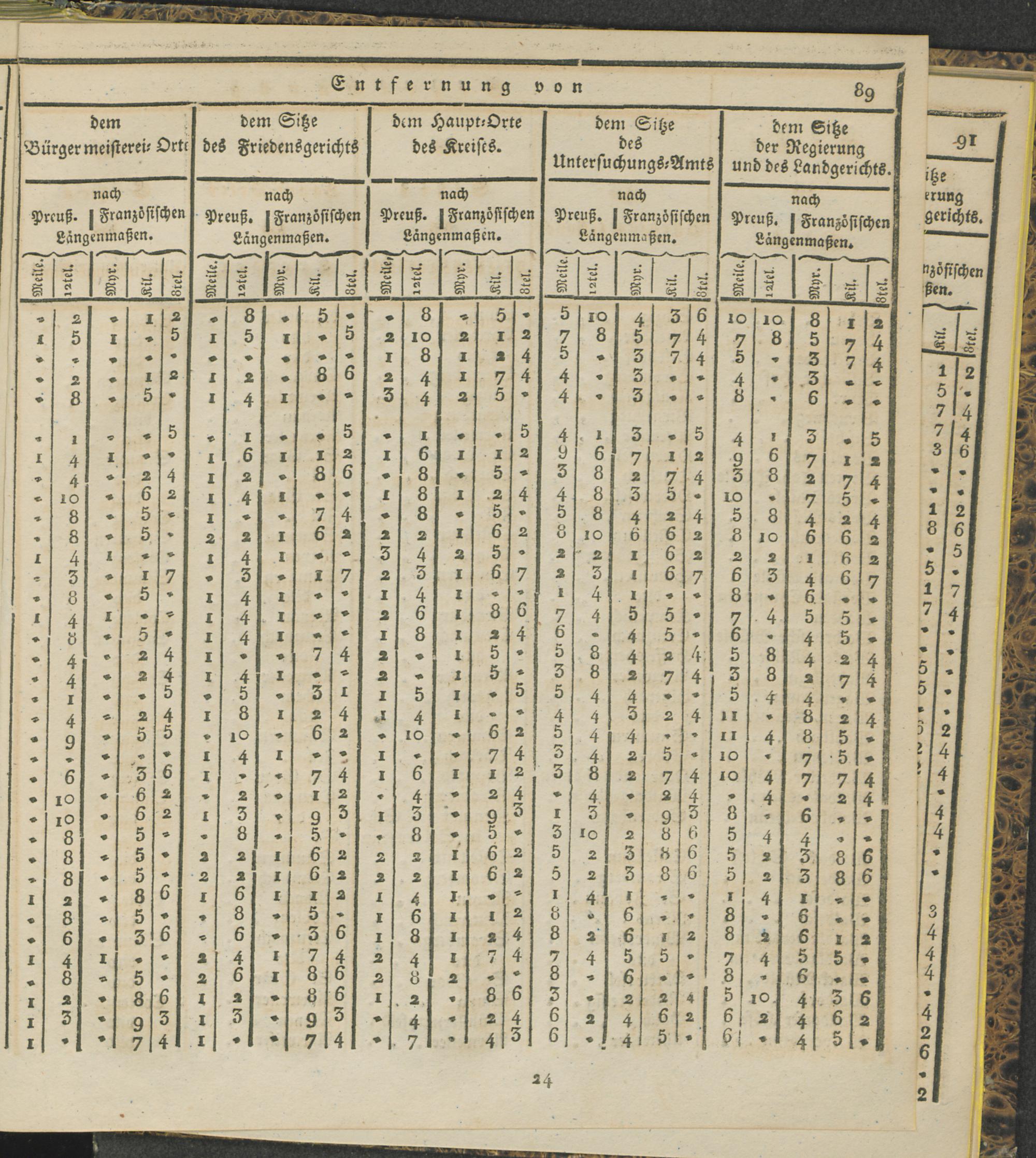 Tabelle der Entfernungen sämmtlicher Ortschaften etc. etc. auf der linken Rheinseite des Regierungs-Bezirks Coblenz