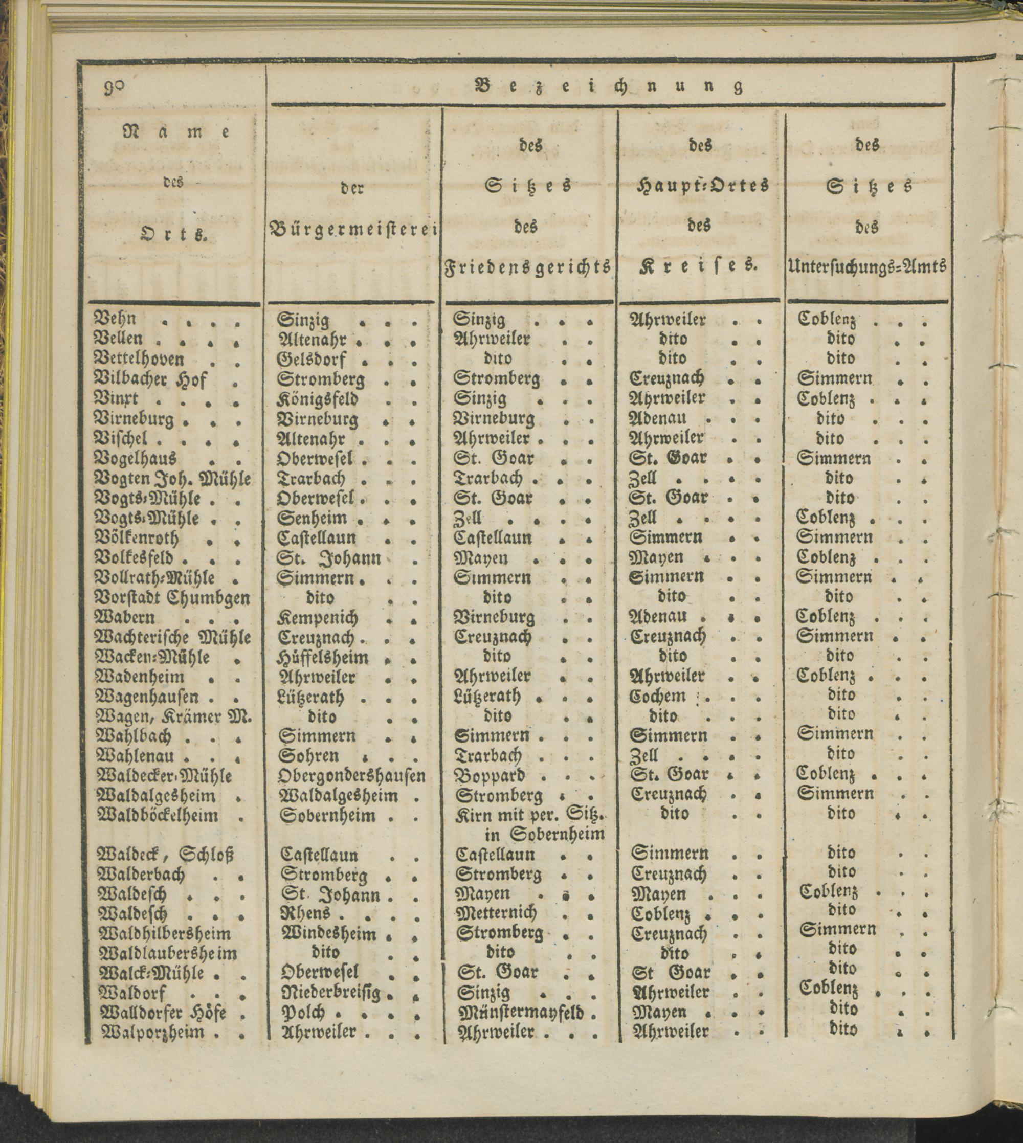 Territorial-Eintheilung der Friedensgerichte im Regierungs-Bezirke Coblenz.