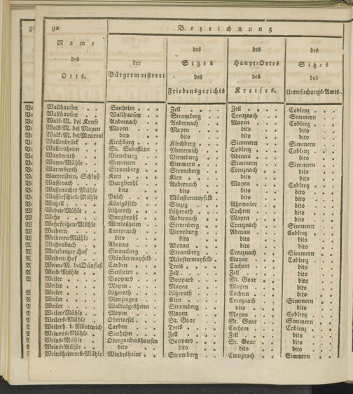 Territorial-Eintheilung der Friedensgerichte im Regierungs-Bezirke Coblenz.