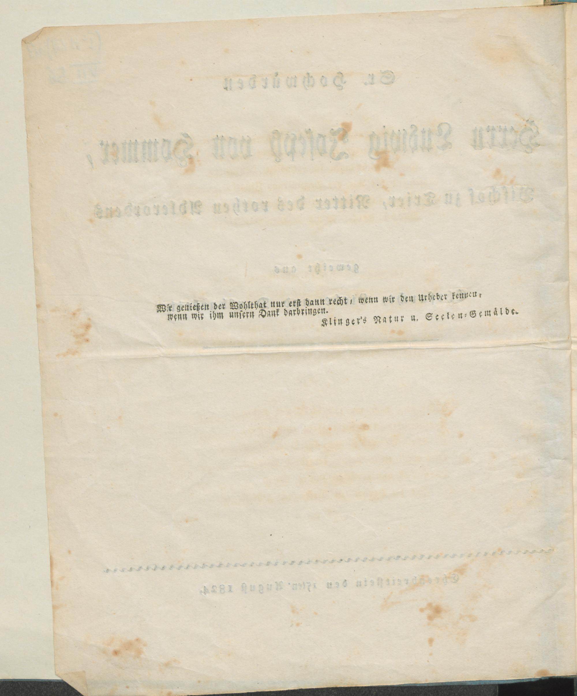 Sr. Hochwürden Herrn Ludwig Joseph von Hommer, Bischof zu Trier, Ritter des rothen Adlerordens geweiht aus Ehrfurcht, Liebe und Dankbarkeit : Ehrenbreitstein den 15ten August 1824 / [B. Siegl]