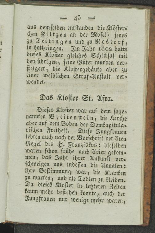 1. Summarisch-geschichtliche Darstellung der klösterlichen Institute unserer Vaterstadt und ihrer Umgebungen