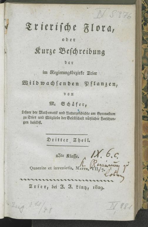 Trierische Flora oder kurze Beschreibung der im Regierungsbezirke Trier wildwachsenden...