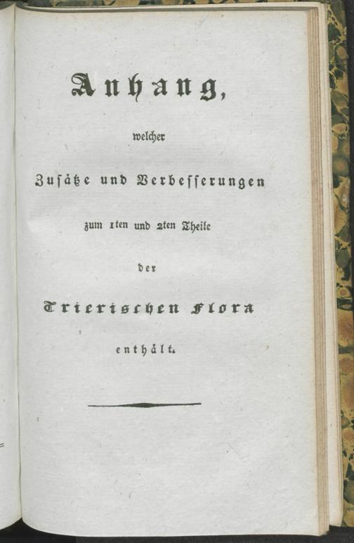 Anhang, welcher Zusätze und Verbesserungen zum Iten und 2ten Theile der Trierischen Flora enthält.