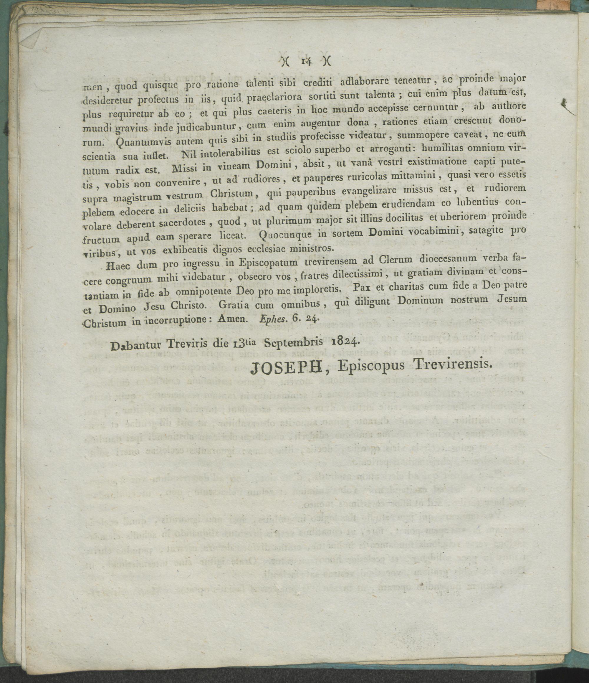 Josephus ab Hommer, divina miseratione Episcopus Trevirensis; universo venerabili clero dioecesano salutem in Domino sempiternam