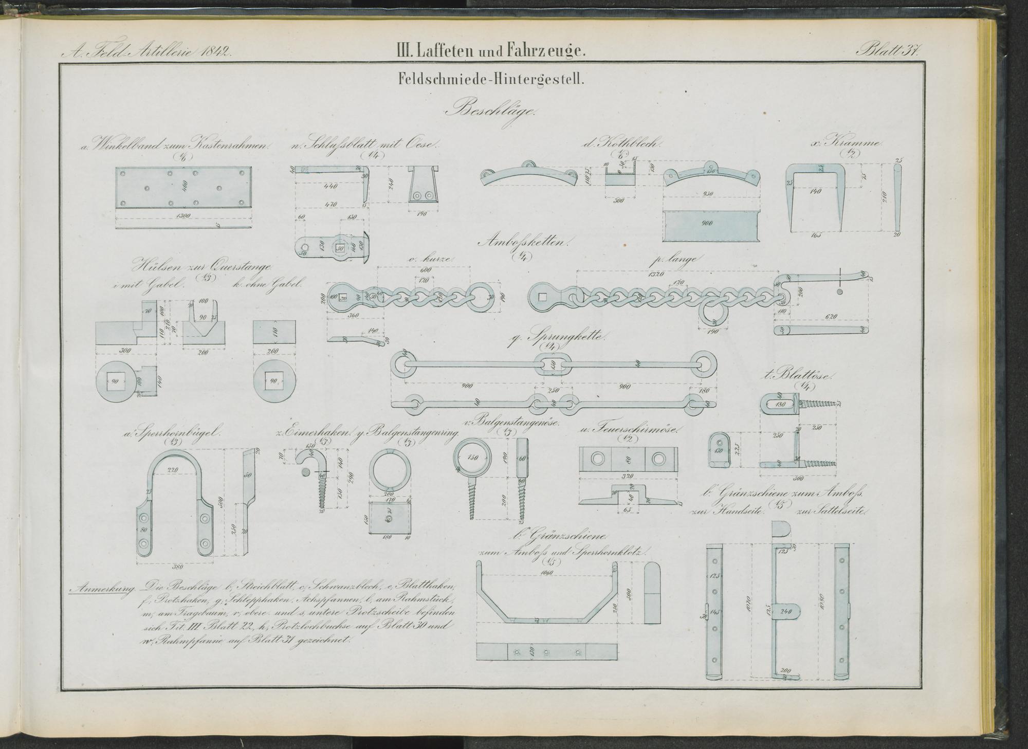 Uebersichts-Blatt von den Zeichungen des Feld-Artillerie-Materials vom Jahre 1842.