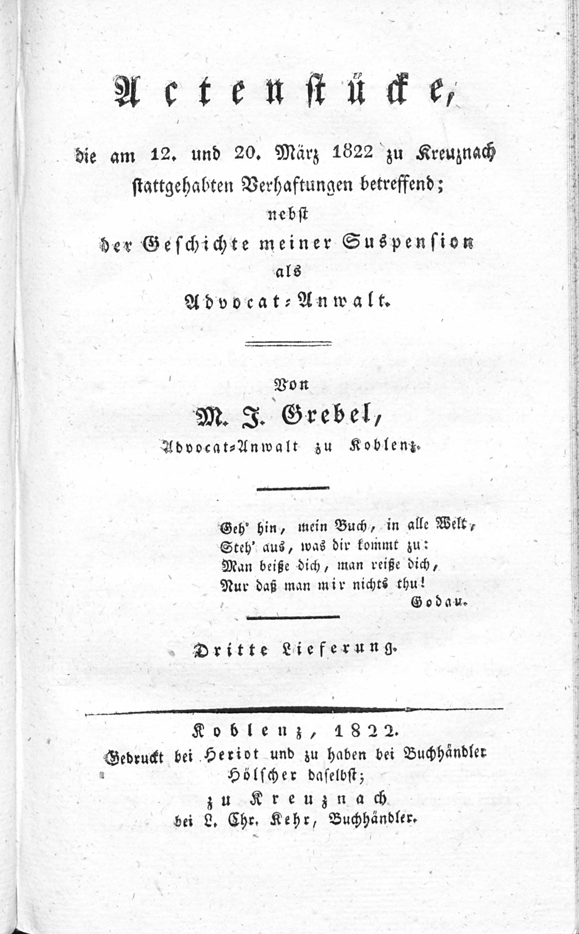 Actenstücke, die am 12ten und 20. März 1822 zu Kreuznach stattgehabten Verhaftungen...