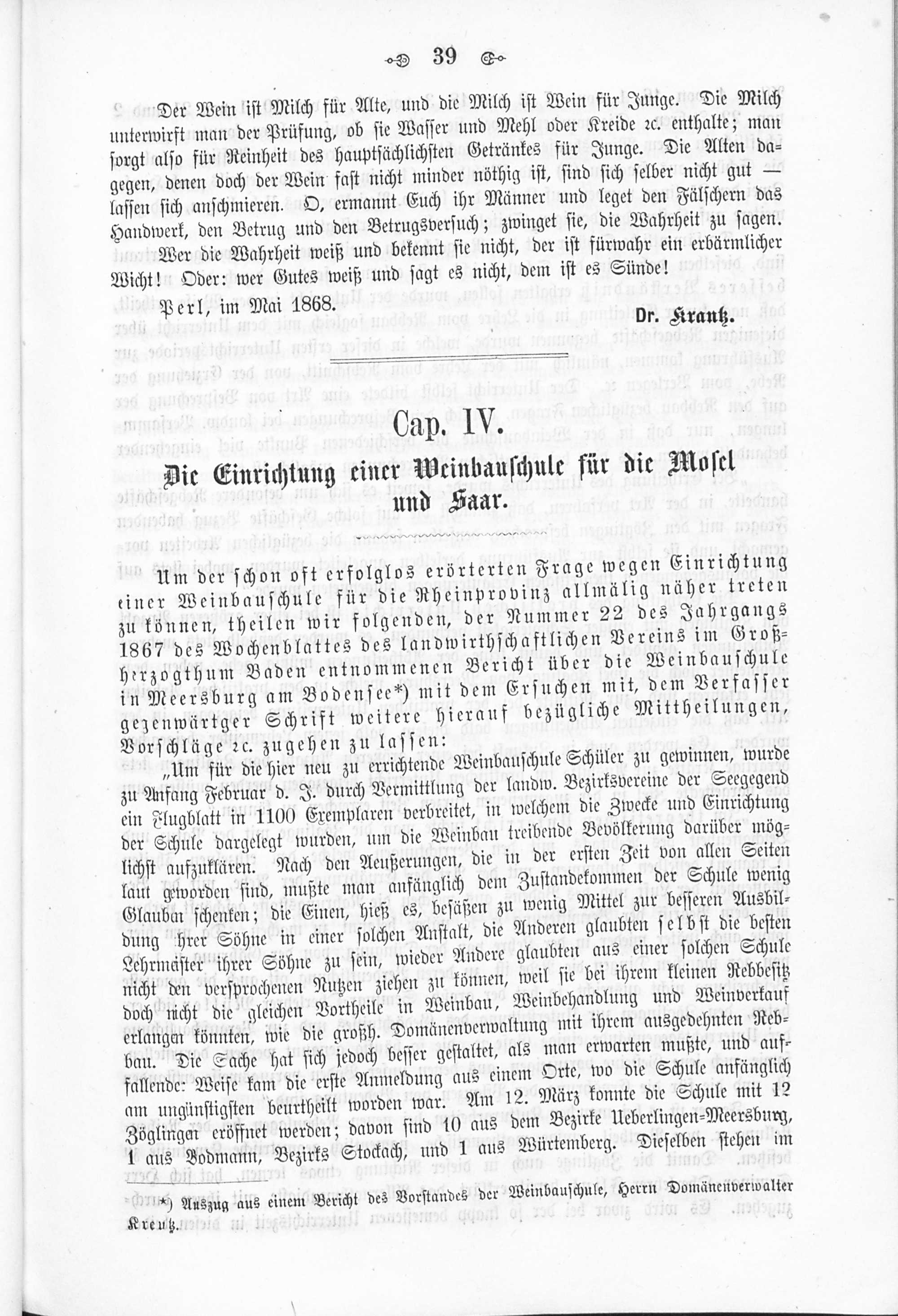 Cap. IV. Die Einrichtung einer Weinbauschule für die Mosel und die Saar.