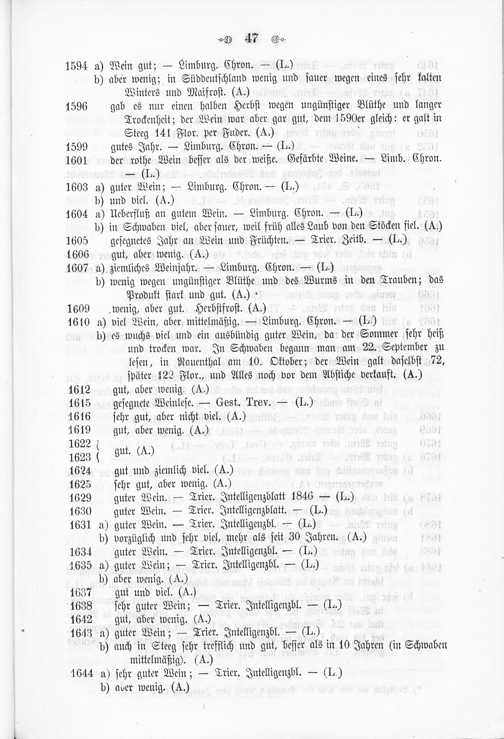 Cap. V. Notizen über die merkwürdigeren Weinjahre von 1070-1867.
