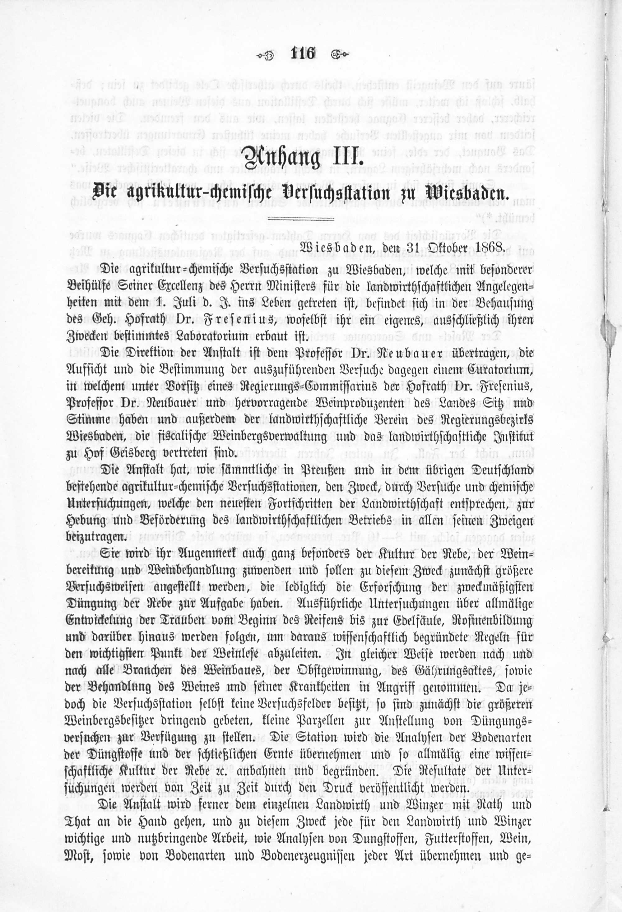 Anhang III. Die agrikultur-chemische Versuchsstation zu Wiesbaden.