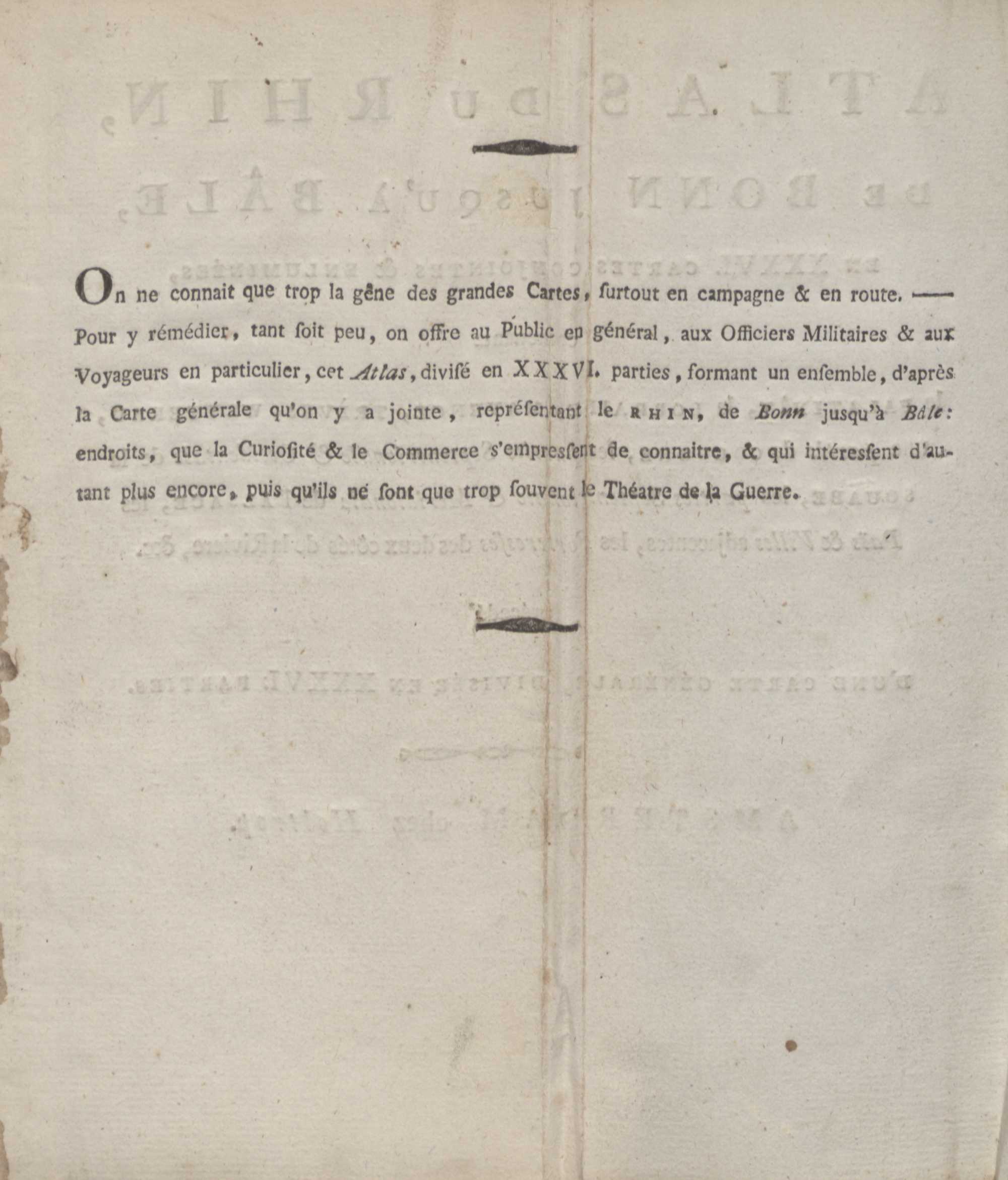 Atlas Van Den Rhyn Van Bonn Tot Bazel : in XXXVI. Afgezette Aan-Een-Sluitende Kaarten ; bevattende: de Paltz, Lotharingen, Mentz, Trier, Wetterau, een gedeelte Van Keulen, het Noorder- en Wester-deel van Swaben, het Noorder- en Zuider-deel van den Elzas, de omliggende Landen en Steden, de Forten en Sterkten aan de beide zyden der Rivier, enz. = Atlas Du Rhin, De Bonn Jusqu'a Bâle