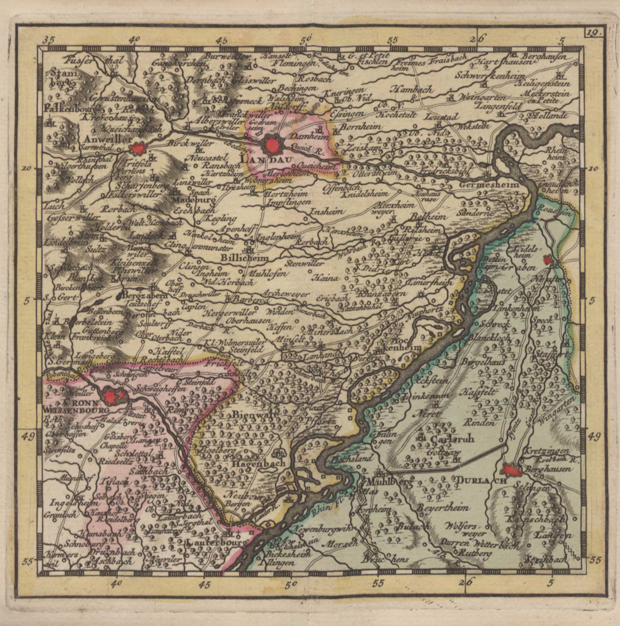 Atlas Van Den Rhyn Van Bonn Tot Bazel : in XXXVI. Afgezette Aan-Een-Sluitende Kaarten ; bevattende: de Paltz, Lotharingen, Mentz, Trier, Wetterau, een gedeelte Van Keulen, het Noorder- en Wester-deel van Swaben, het Noorder- en Zuider-deel van den Elzas, de omliggende Landen en Steden, de Forten en Sterkten aan de beide zyden der Rivier, enz. = Atlas Du Rhin, De Bonn Jusqu'a Bâle