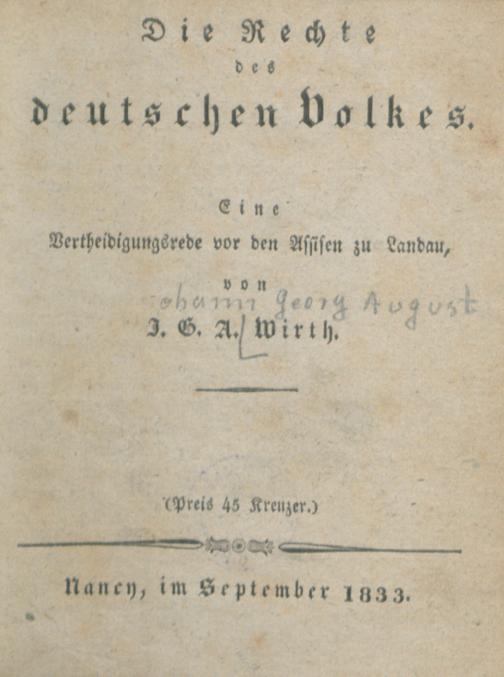 Die Rechte des deutschen Volkes : Eine Vertheidigungsrede vor den Assisen zu Landau / von J. G. A. Wirth