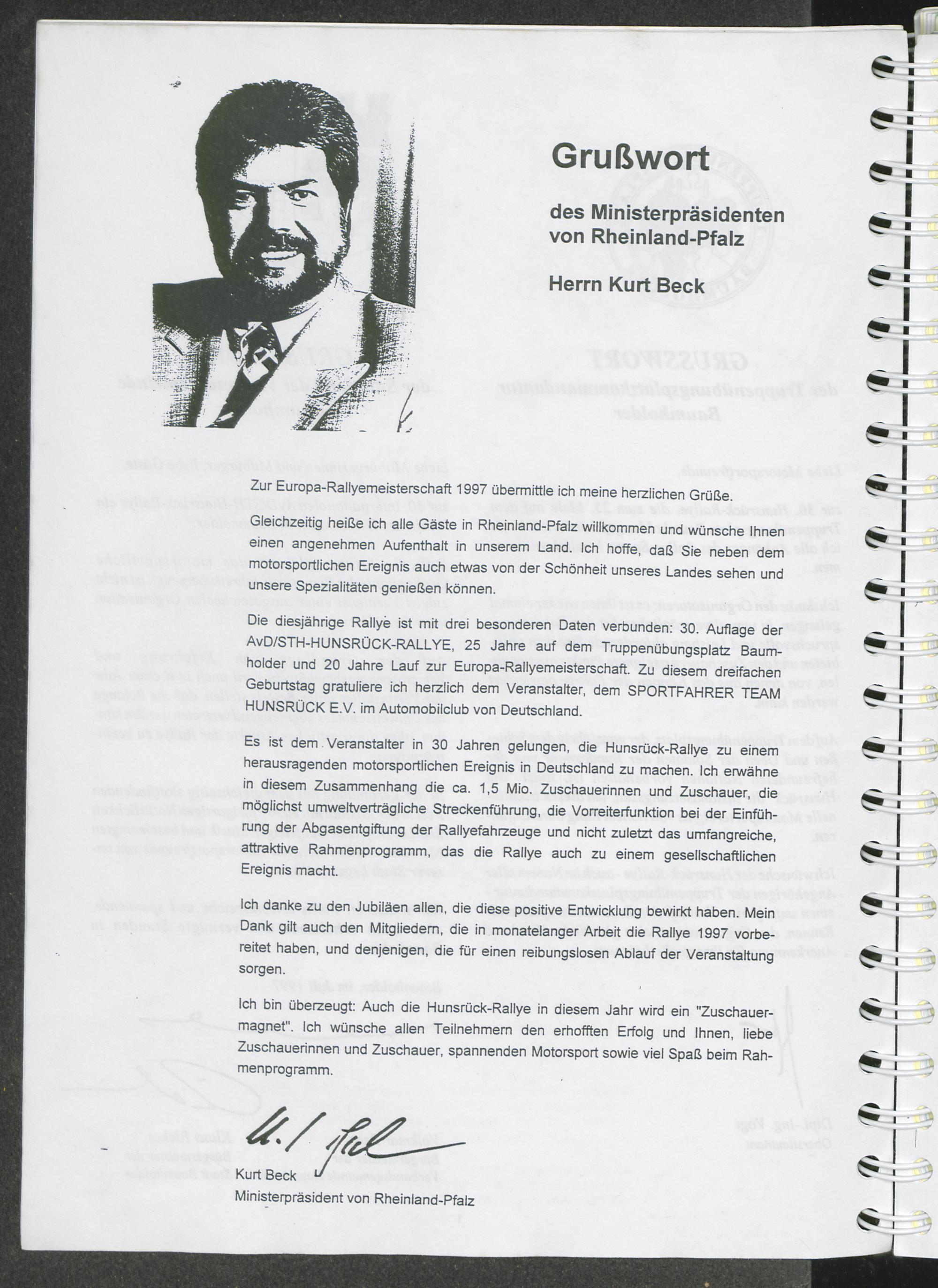 Grußwort des Ministerpräsidenten von Rheinland-Pfalz Herrn Kurt Beck