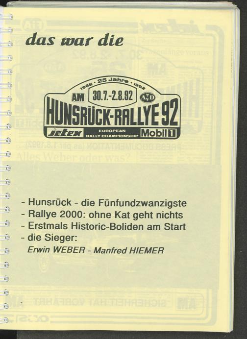 das war die Hunsrück-Rallye 92 (30.7.-2.8.92)