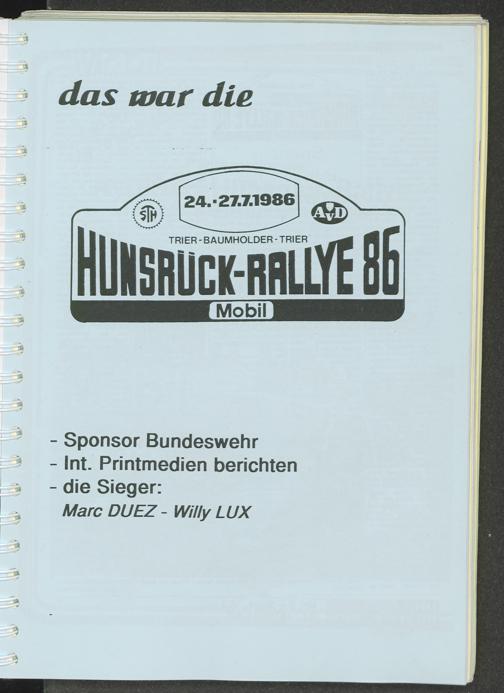 das war die Hunsrück-Rallye 86 (24.-27.7.1986)