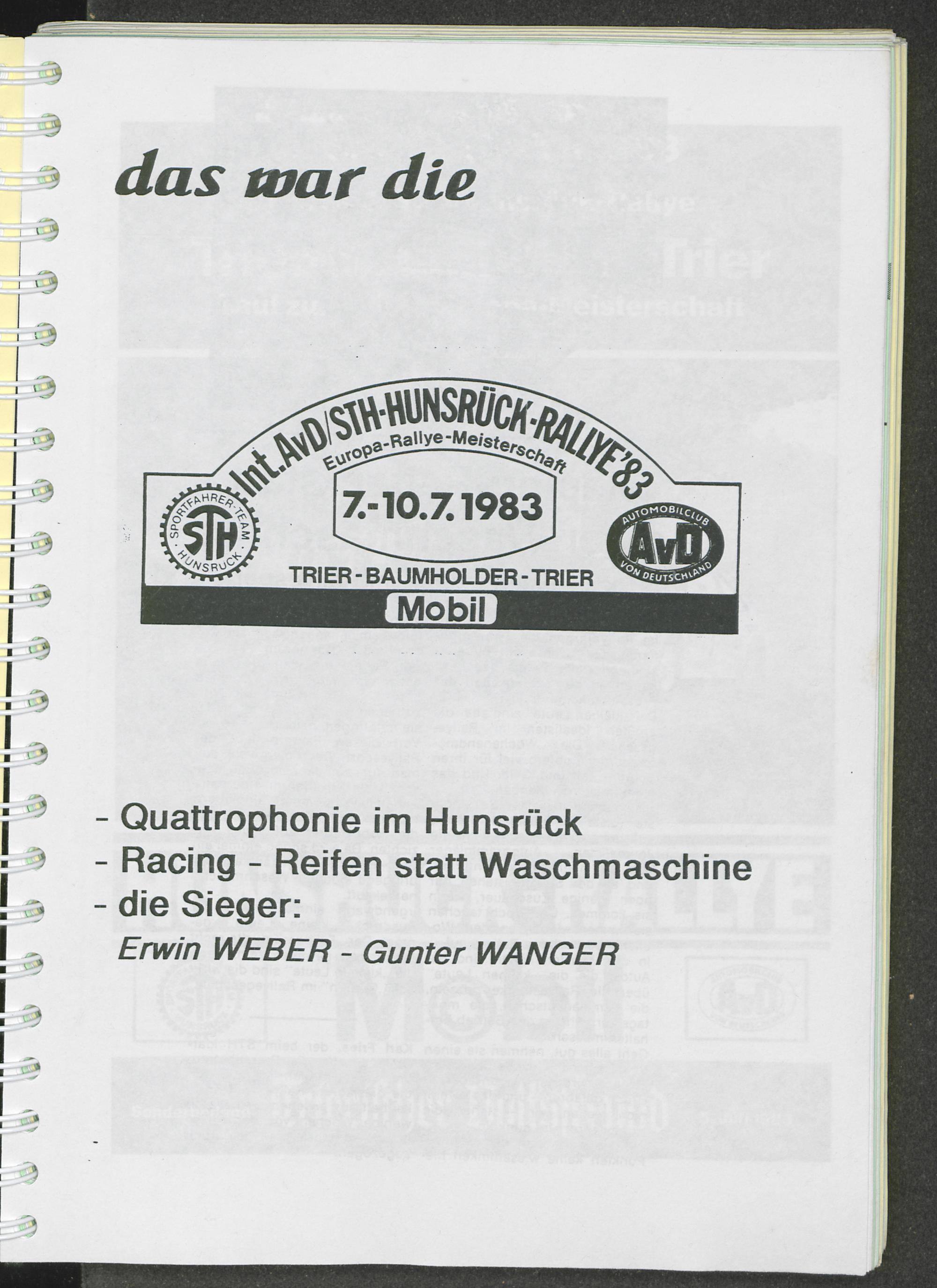 das war die Int. AvD/STH-Hunsrück-Rallye '83 (7.-10.7.1983)