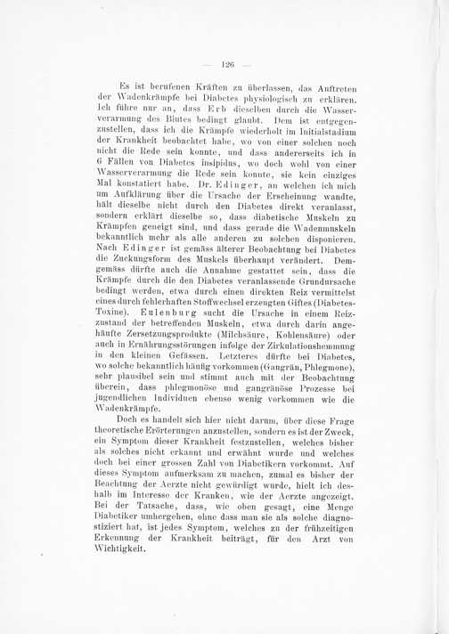 Wadenkrämpfe, ein Symptom des Diabetes. Von Sanitätsrat Dr. Unschuld.