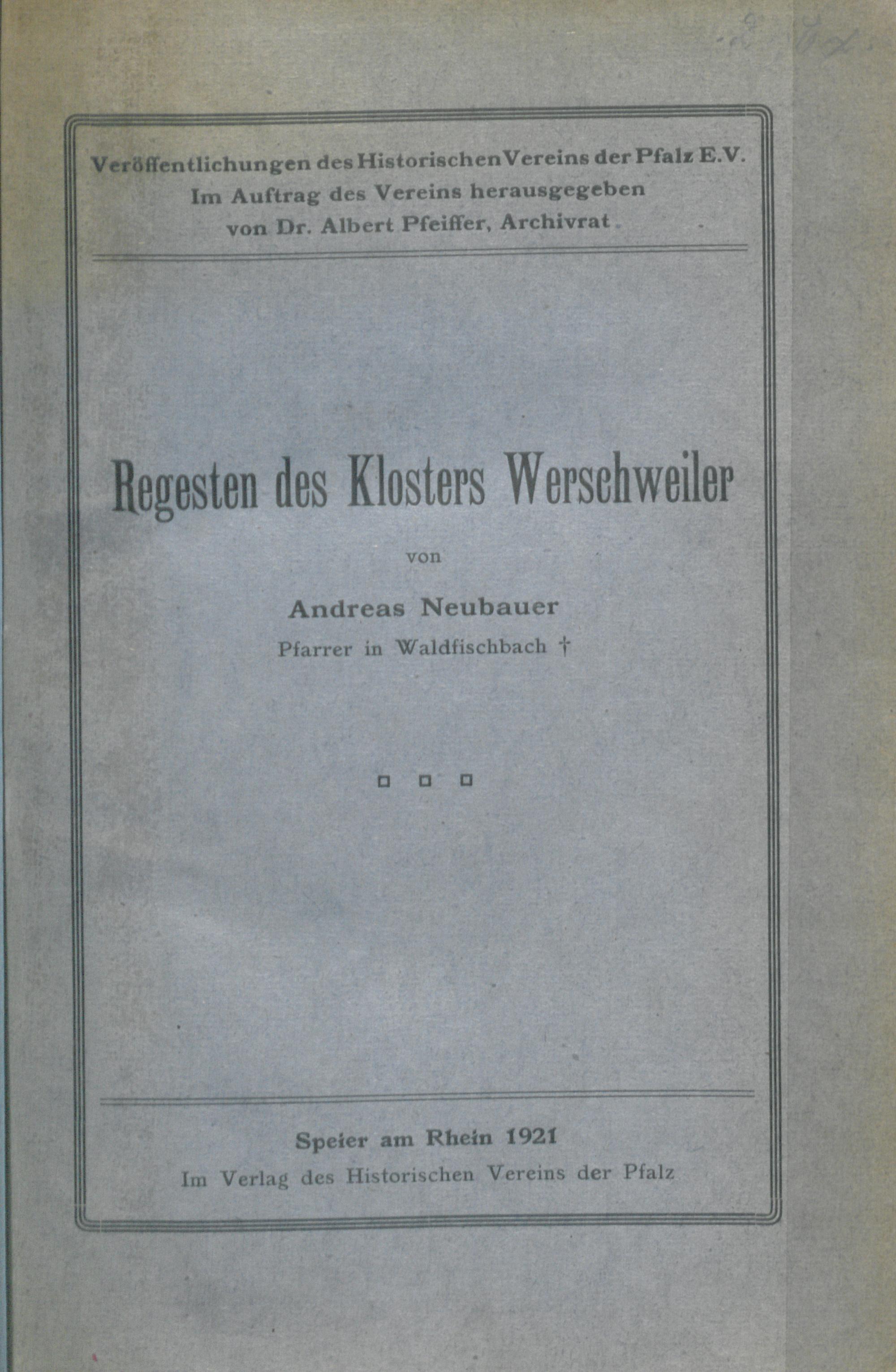 Regesten des Klosters Werschweiler / von Andreas Neubauer