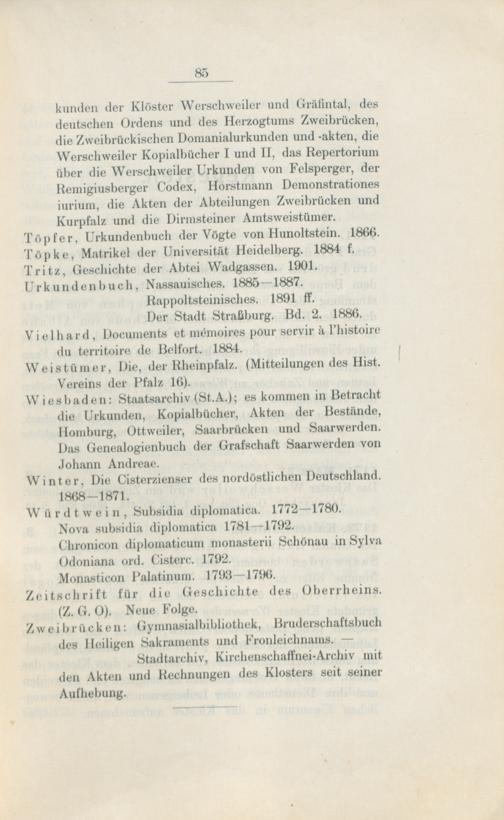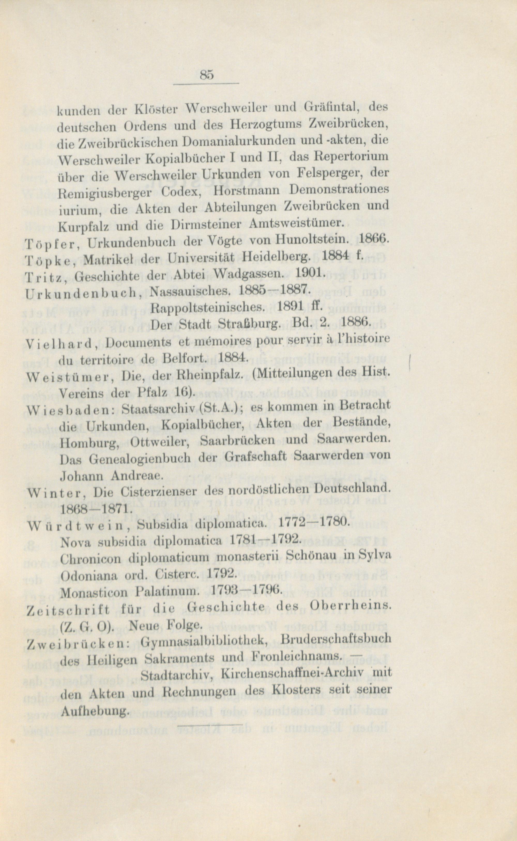 Regesten des Klosters Werschweiler / von Andreas Neubauer