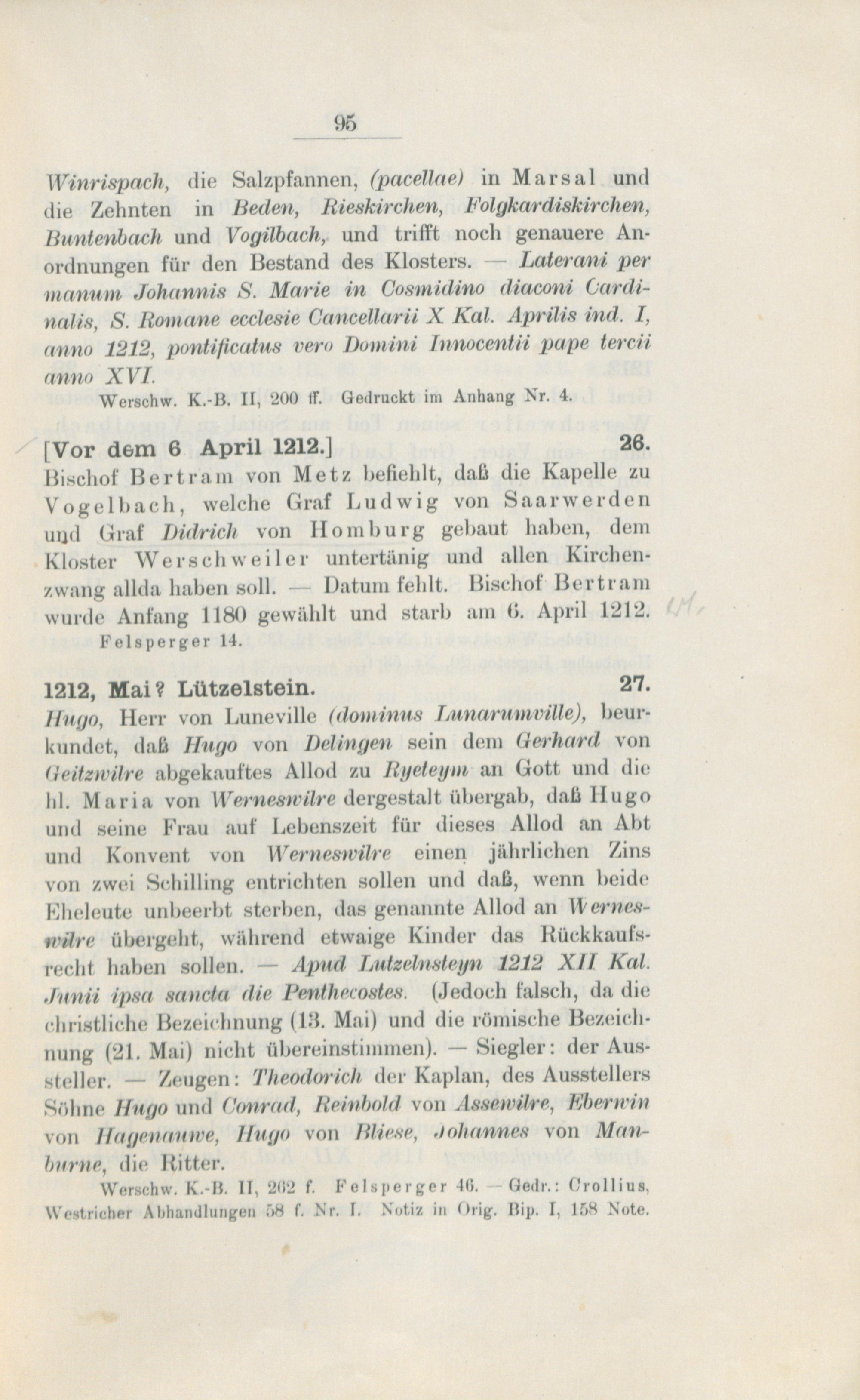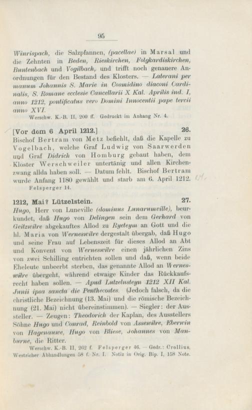 Regesten des Klosters Werschweiler