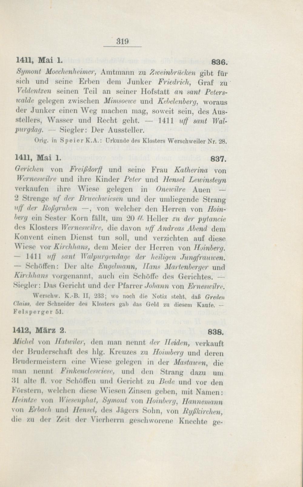 Regesten des Klosters Werschweiler