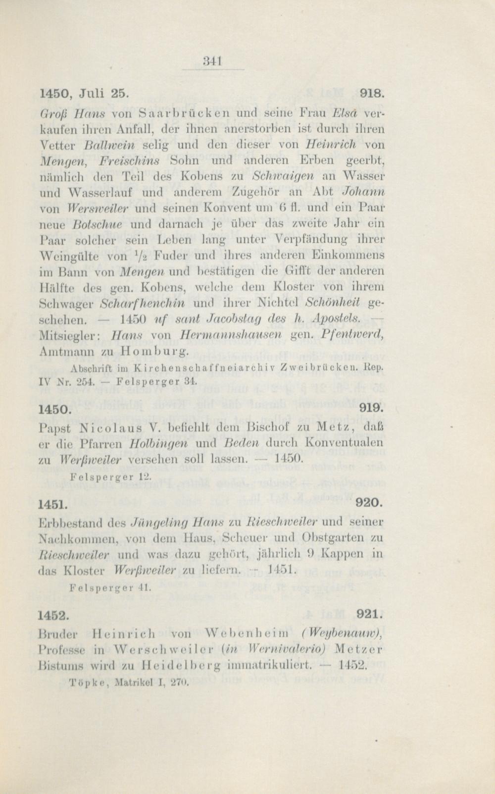 Regesten des Klosters Werschweiler / von Andreas Neubauer
