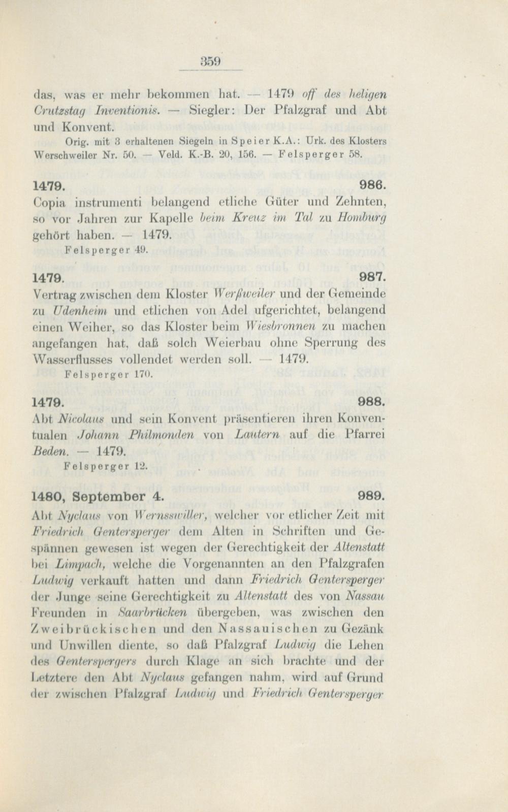 Regesten des Klosters Werschweiler