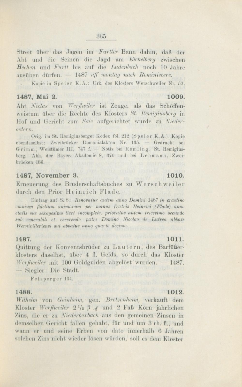 Regesten des Klosters Werschweiler