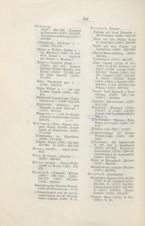 Regesten des Klosters Werschweiler