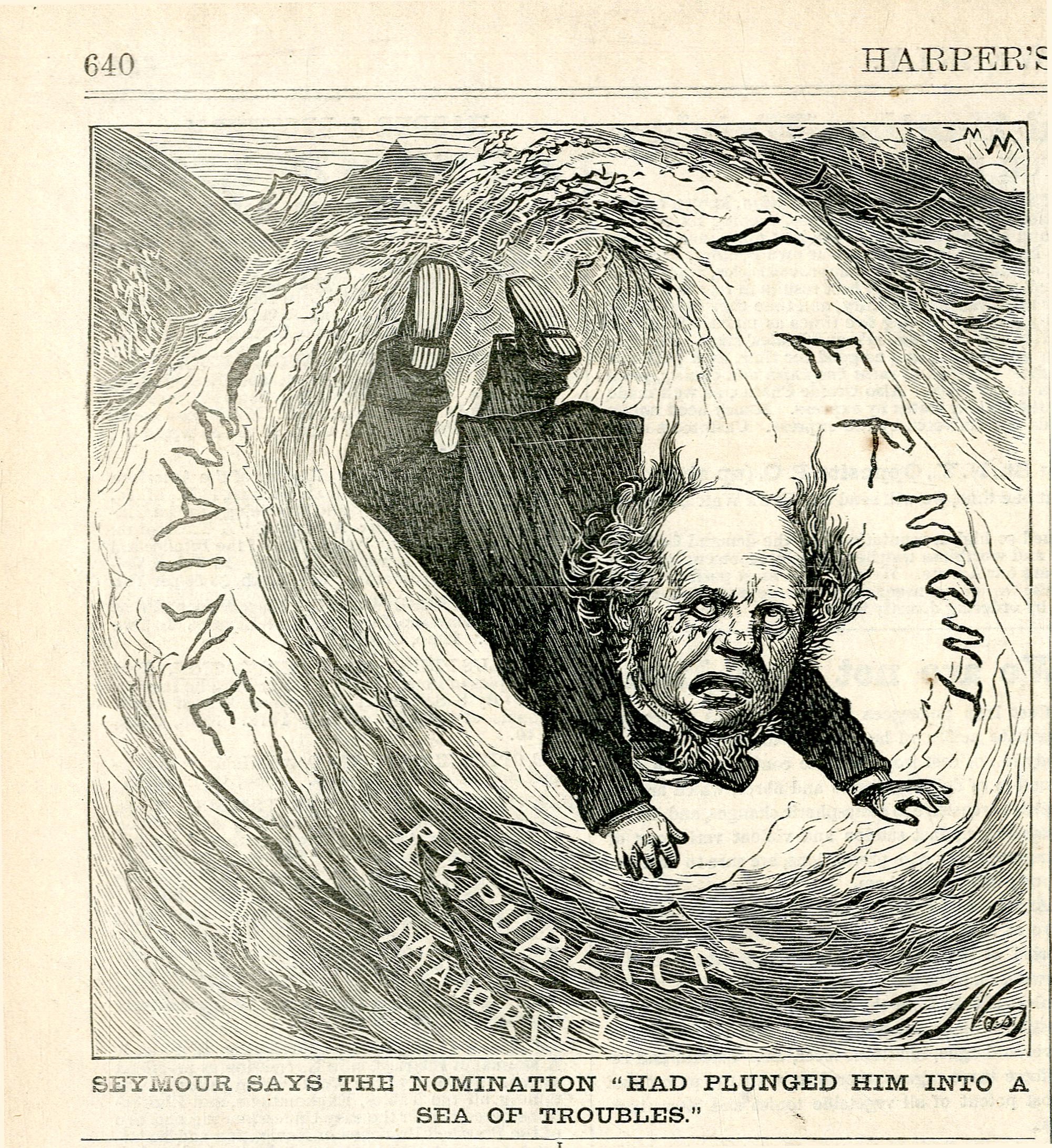 Seymour says the nomination "had plunged him into a sea of troubles" : Horatio Seymour gerät in den Strudel einer republikanischen Mehrheit / Th. Nast
