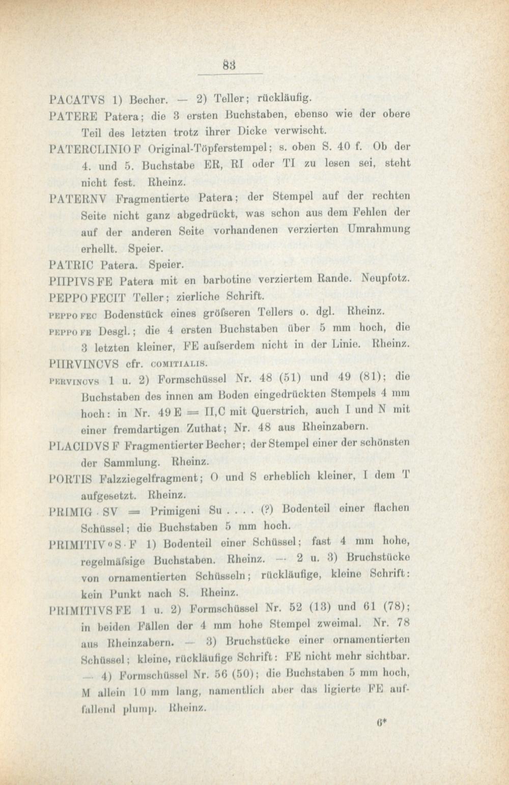 Die Terra sigillata-Gefässe des Speierer Museums.
