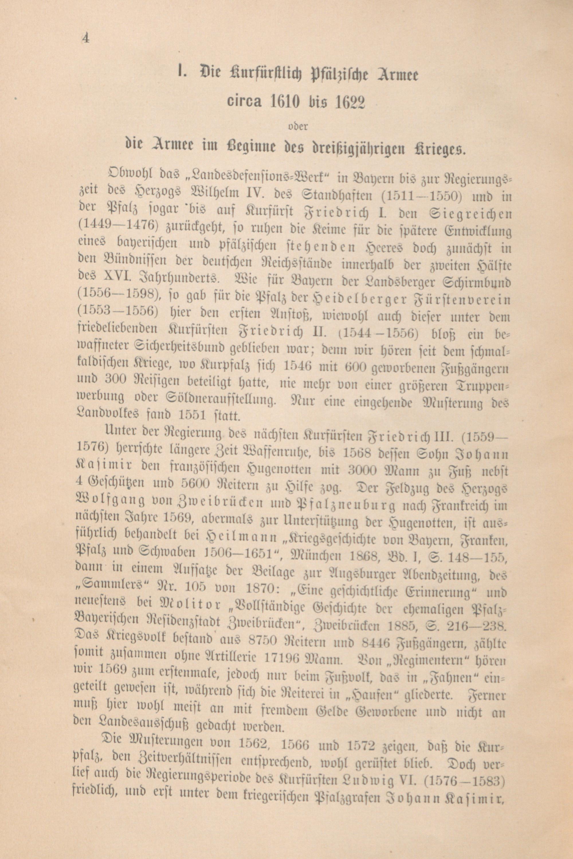 I. Die Kurfürstlich Pfälzische Armee circa 1610 bis 1622