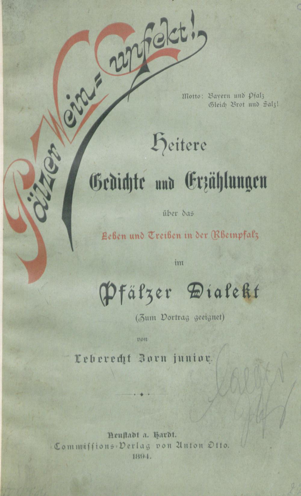 Pälzer Weinkunfekt : Heiteres im Pfälzer Dialekt / von Leberecht Zorn junior
