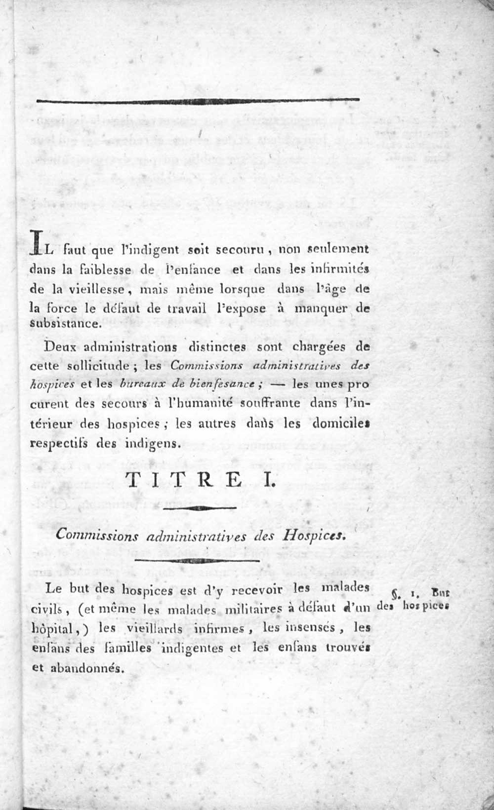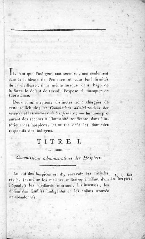 Titre I. Commissions administratives des Hospices.