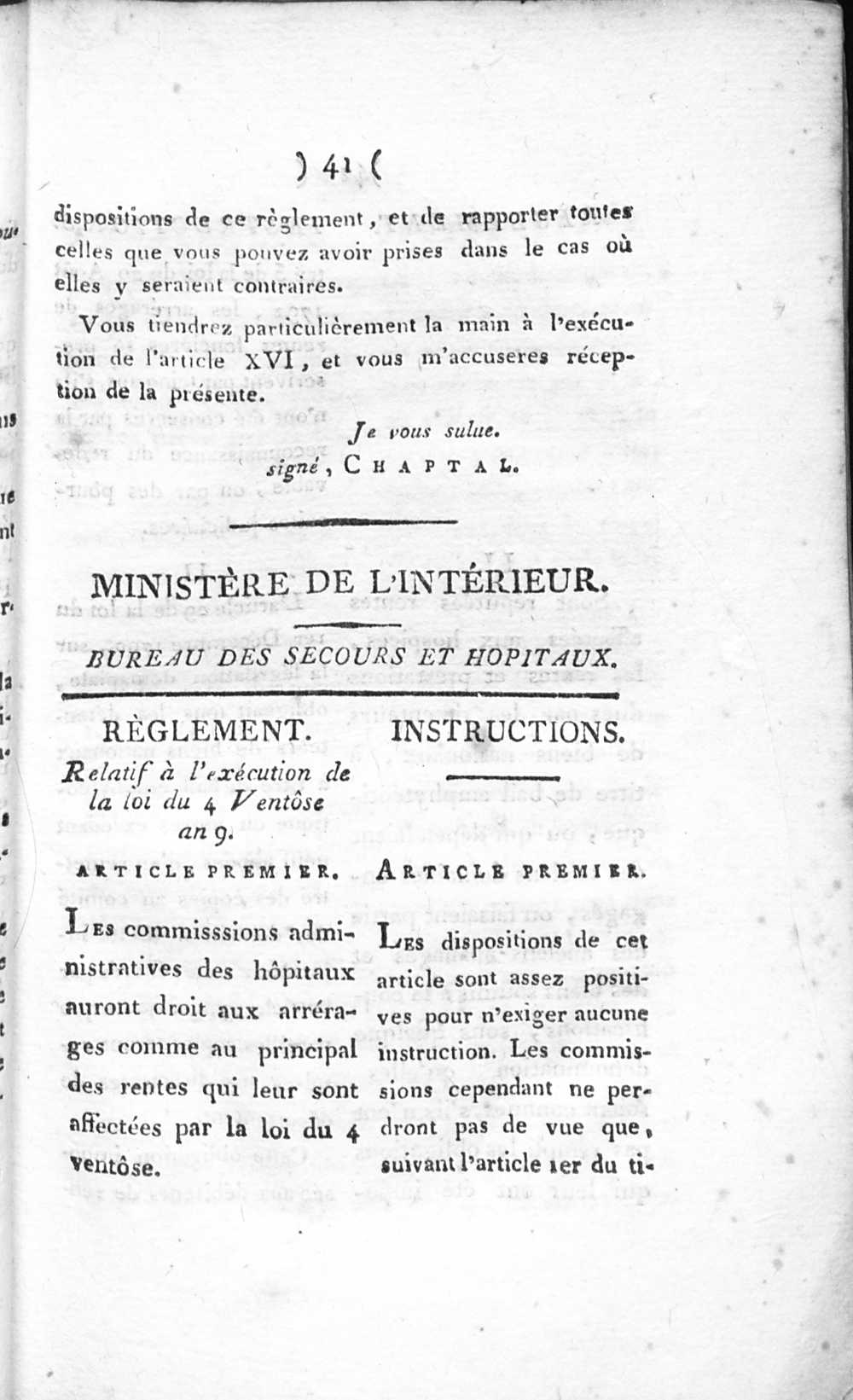 Titre I. Commissions administratives des Hospices.