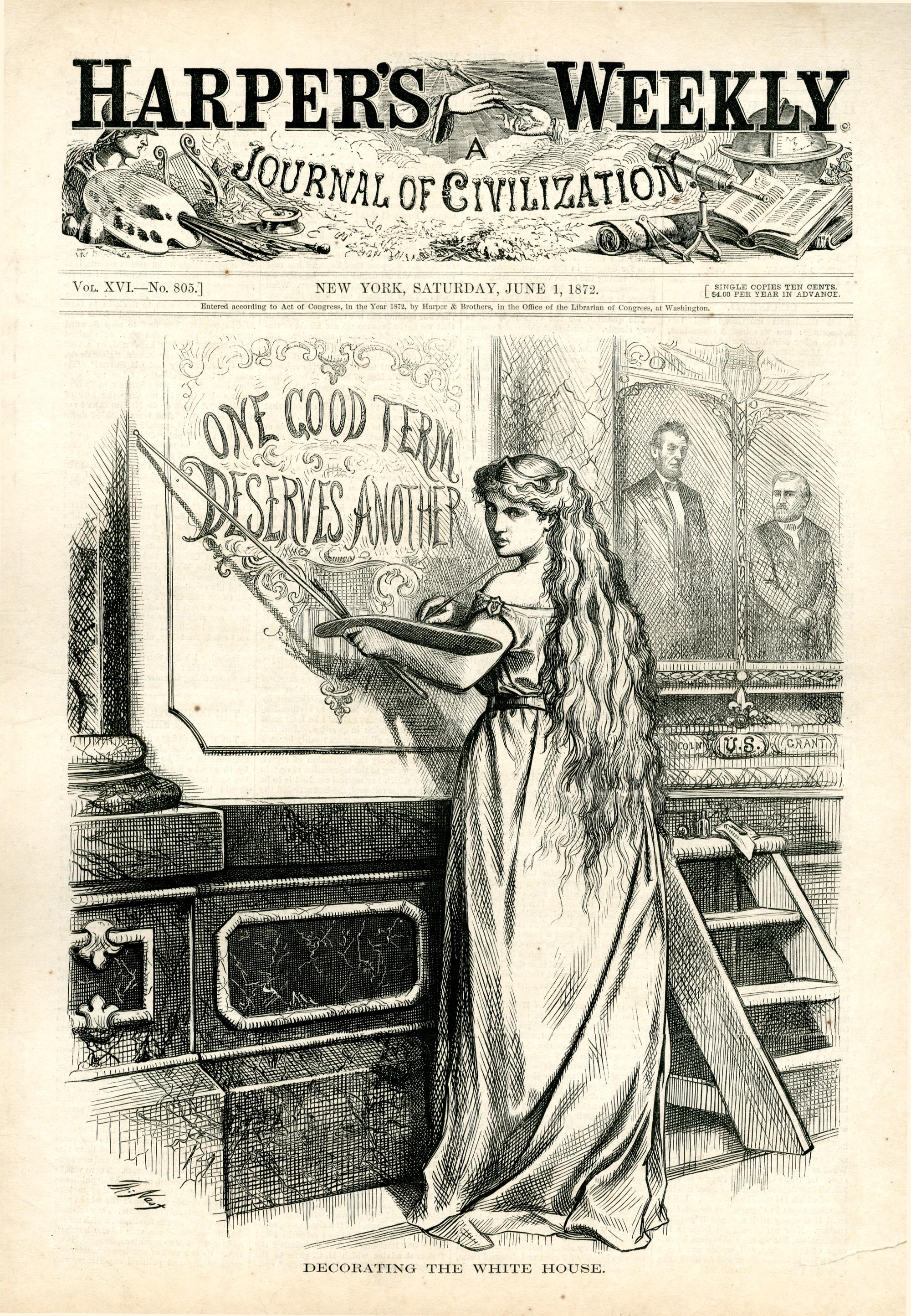 Decorating the White House : Columbia malt ein Sprichwort an eine Wand im Weißen Haus / Th. Nast