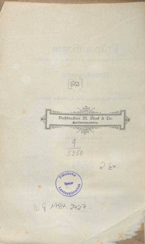 Präparationen zur unterrichtlichen und erbaulichen Behandlung des Katechismus für die vereinigte protestantisch-evangelisch-christliche Kirche der Pfalz / von Heinrich Guth